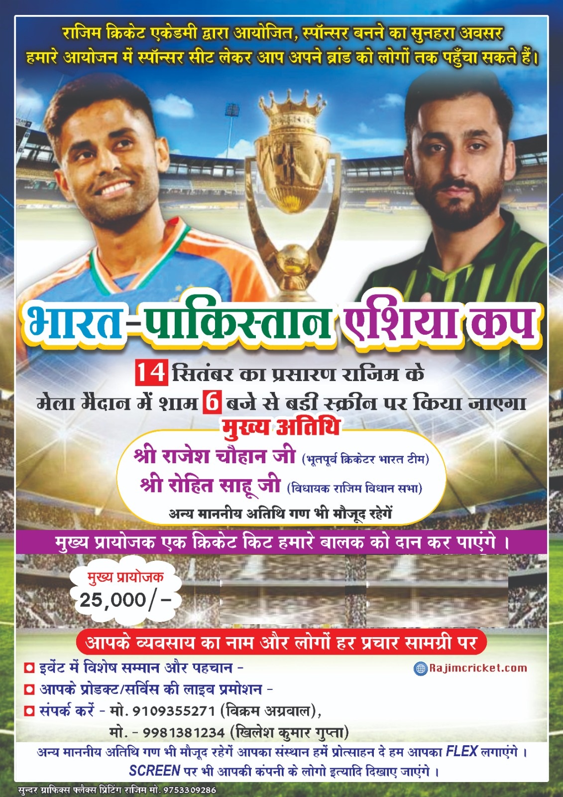 On 14th Sep 2025, RJCA will organise Fan Park event at Mela Maidan Rajim Chhattisgarh with good crowd capcity.